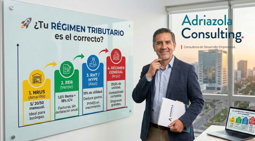 Compara el NRUS, RER, Régimen MYPE Tributario y Régimen General — y descubre cuál te conviene según el tamaño y giro de tu negocio. 📊 DATO CLAVE: Según la SUNAT, más del 60% de los contribuyentes activos en el Perú está en el NRUS o el RER, pero una parte significativa de ellos ya supera […]